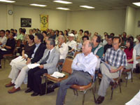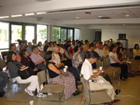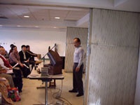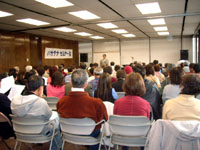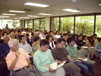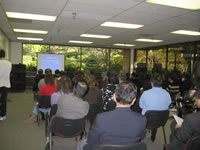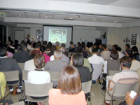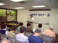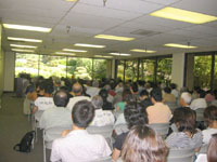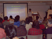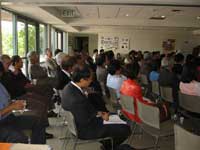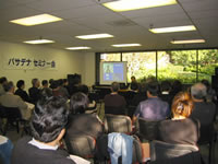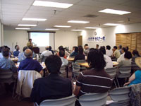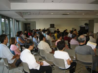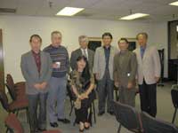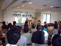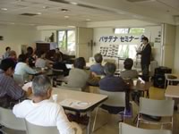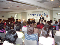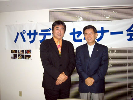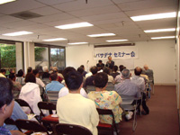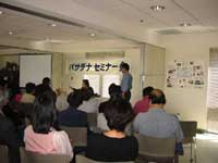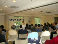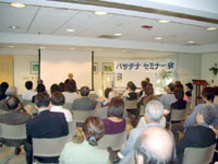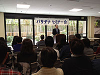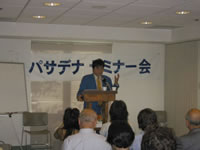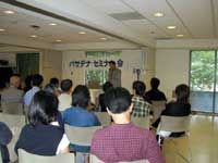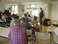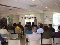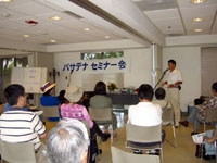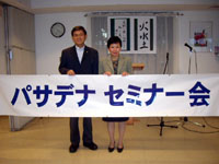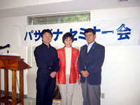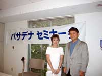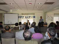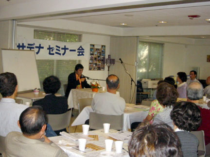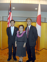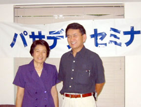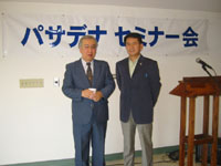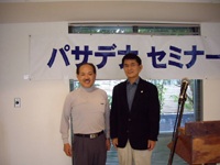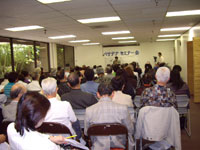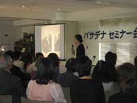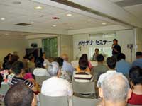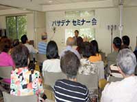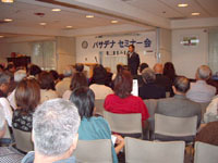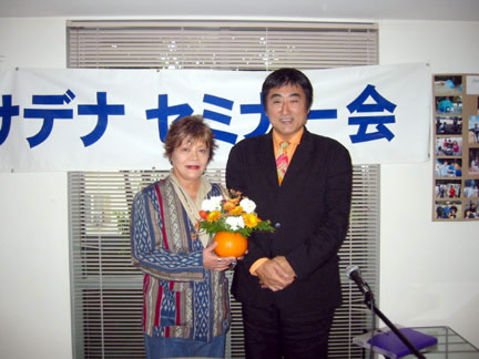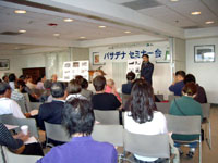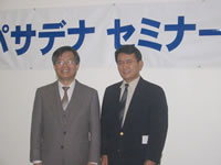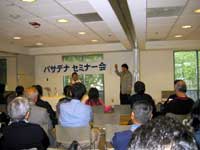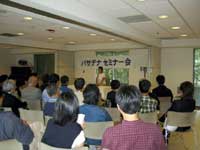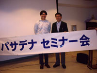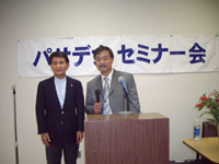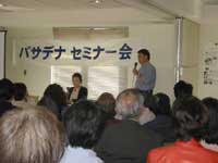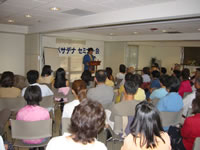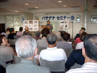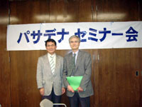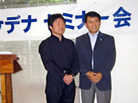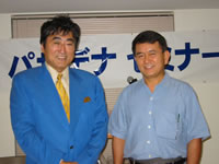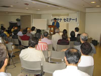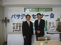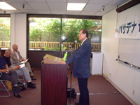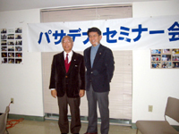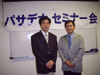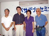 加藤講師と主宰の半田。日本の あしなが育英会から訪問中の 女子大学生二人と