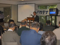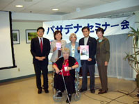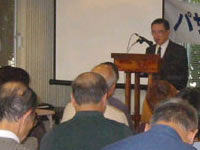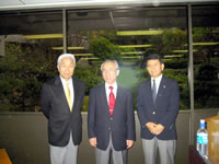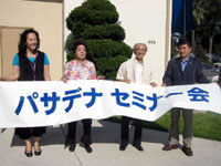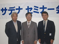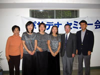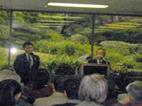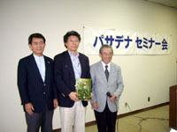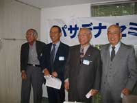 左から小山元庭園業連盟会長、関夫人、関三脚講師、主宰の半田